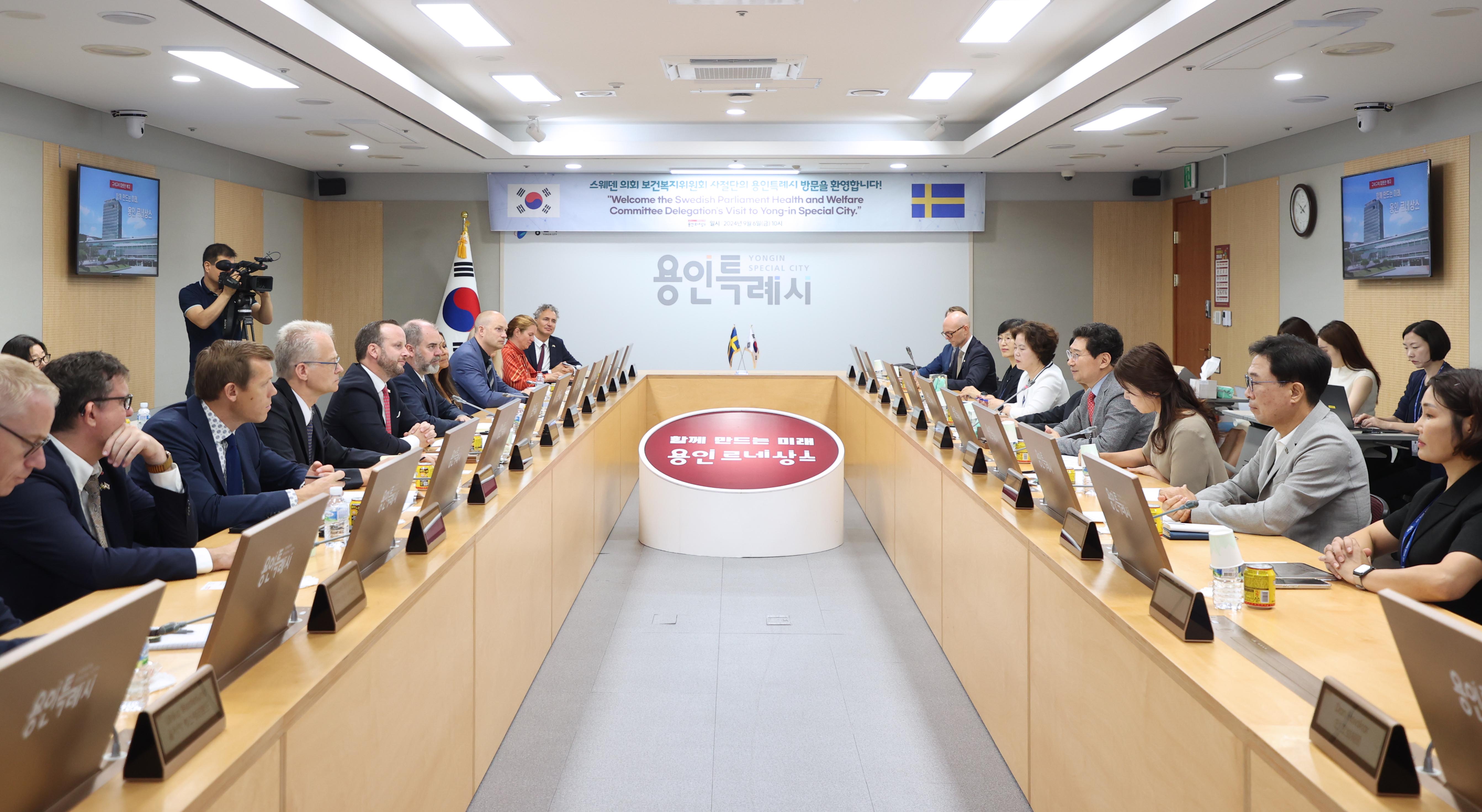용인특례시는(시장 이상일) 6일 스웨덴 의회 보건복지위원회 대표단과 주한 스웨덴 대사관 관계자들이 시청을 방문해 용인시의 사회복지정책과 인공지능(AI)을 활용한 복지서비스에 대한 설명을 듣고 상호 협력 방안을 논의했다고 밝혔다.