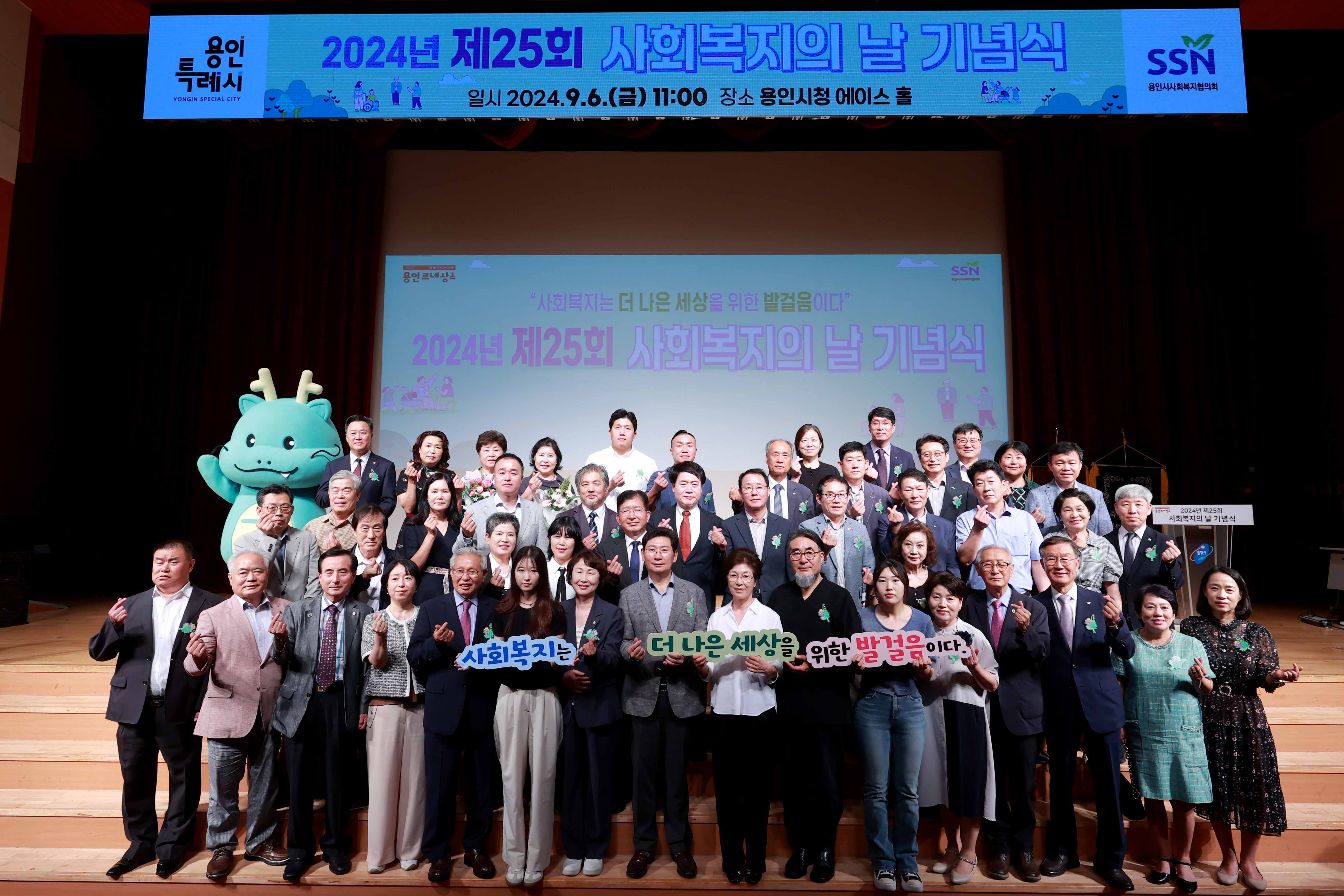 용인특례시 사회복지협의회가 주관한 이날 행사에는 이상일 용인특례시장, 윤상형 용인사회복지협의회 회장을 비롯해 경기도의원, 용인시의원, 사회복지시설·기관 종사자 등 500여 명이 참석했다.