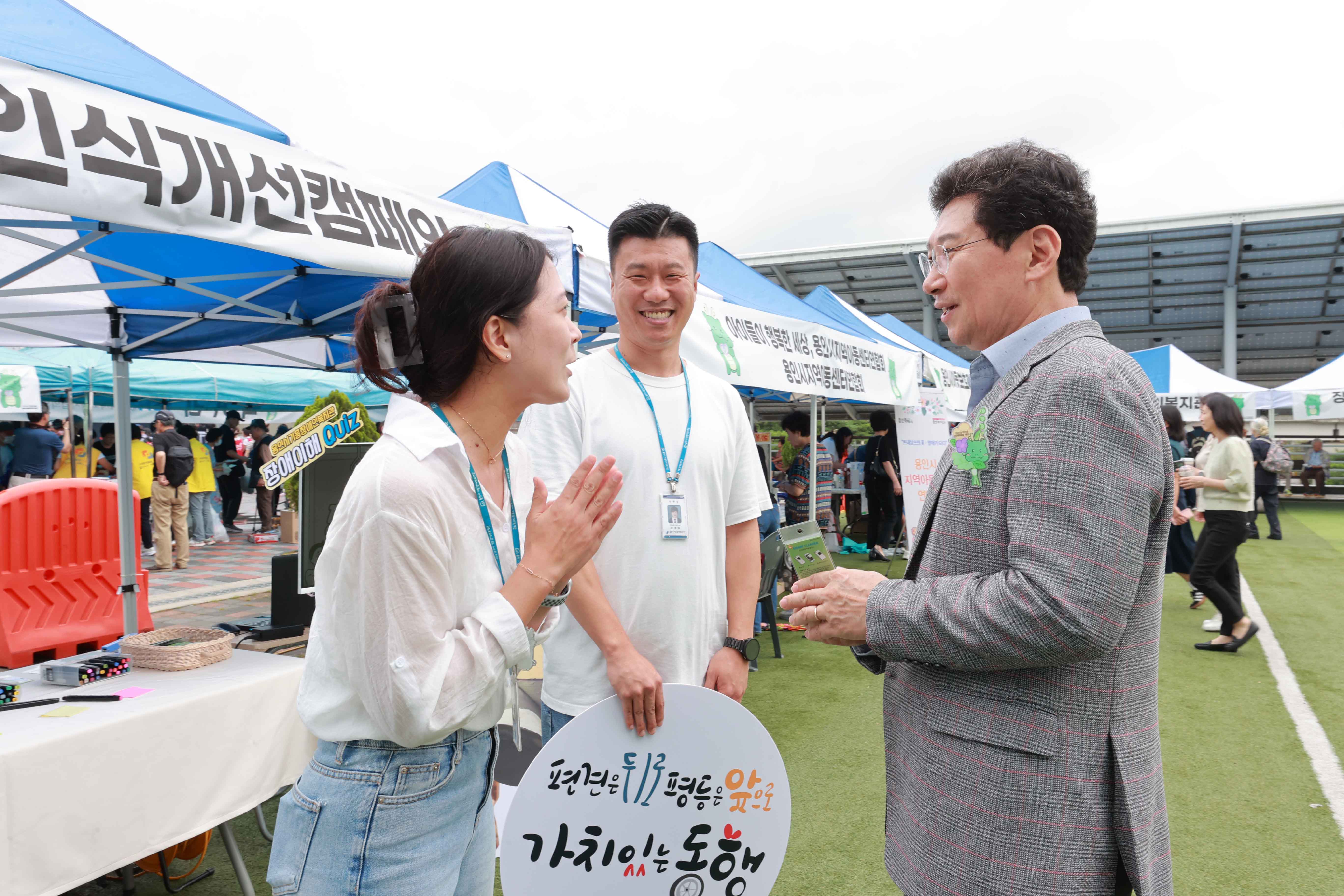 시민들은 용인시 장애인자립생활센터 부스에서 장애인식 개선을 위한 보장구 체험을 하고 처인노인복지관의 AI 노인복지 ZONE에서 키오스크 체험을 하는 등 다채로운 활동을 했다.