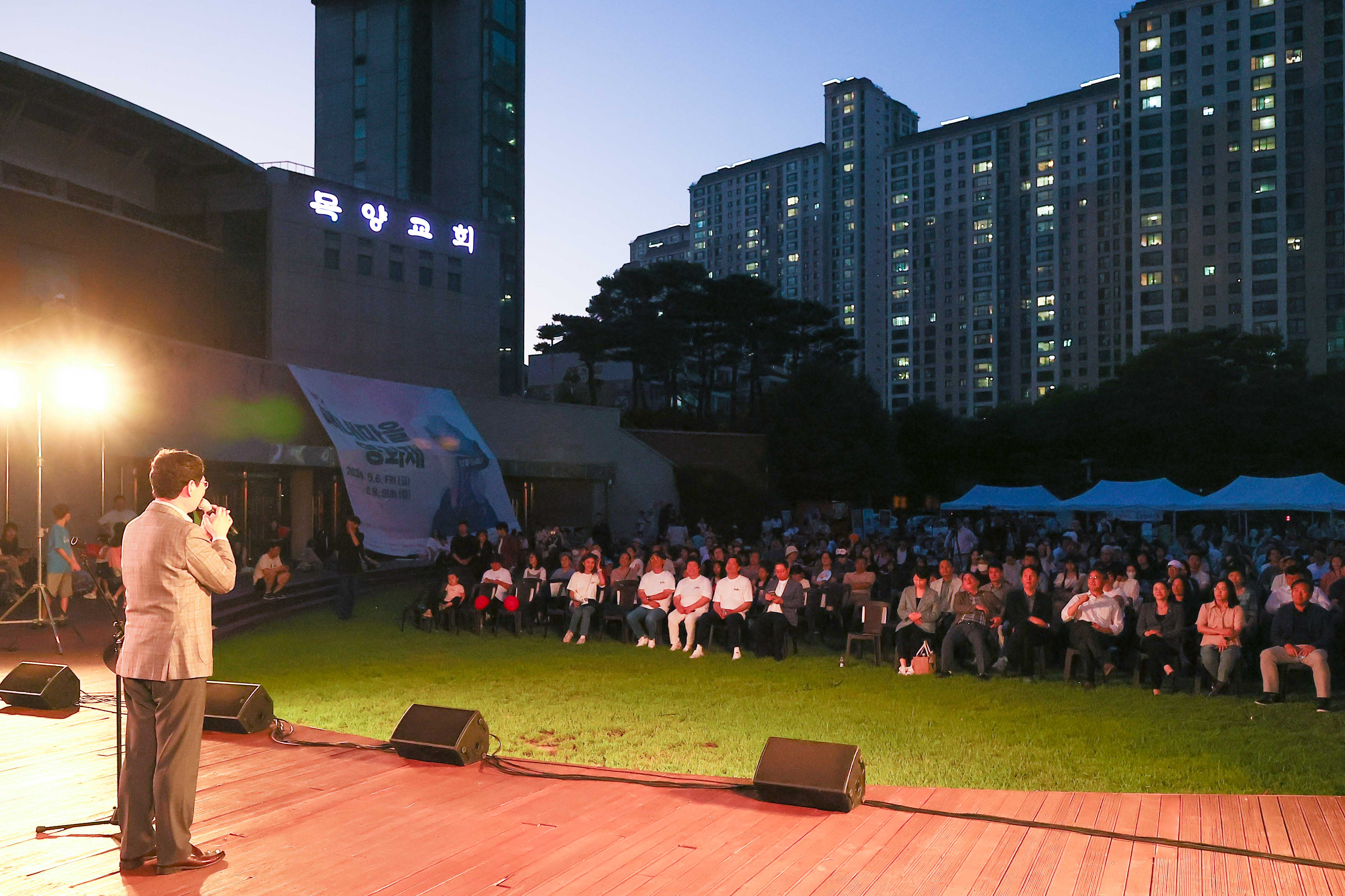 이상일 용인특례시장은 7일 저녁 수지구 동천동 목양교회 잔디마당에서 열린 ‘제7회 머내마을 영화제’의 메인 행사인 야외영화축제 행사장을 찾아 축하의 뜻을 전했다.