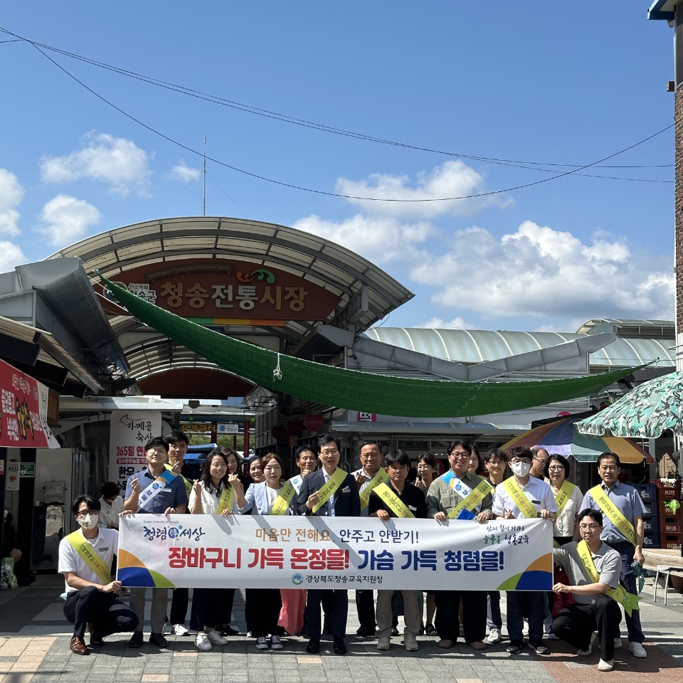경상북도청송교육지원청(교육장 신덕섭)은 9월 9일(월) 청송재래시장을 방문하여 전통시장 활성화와 청렴 문화 확산을 위한 추석맞이 장보기 행사를 진행하였다.