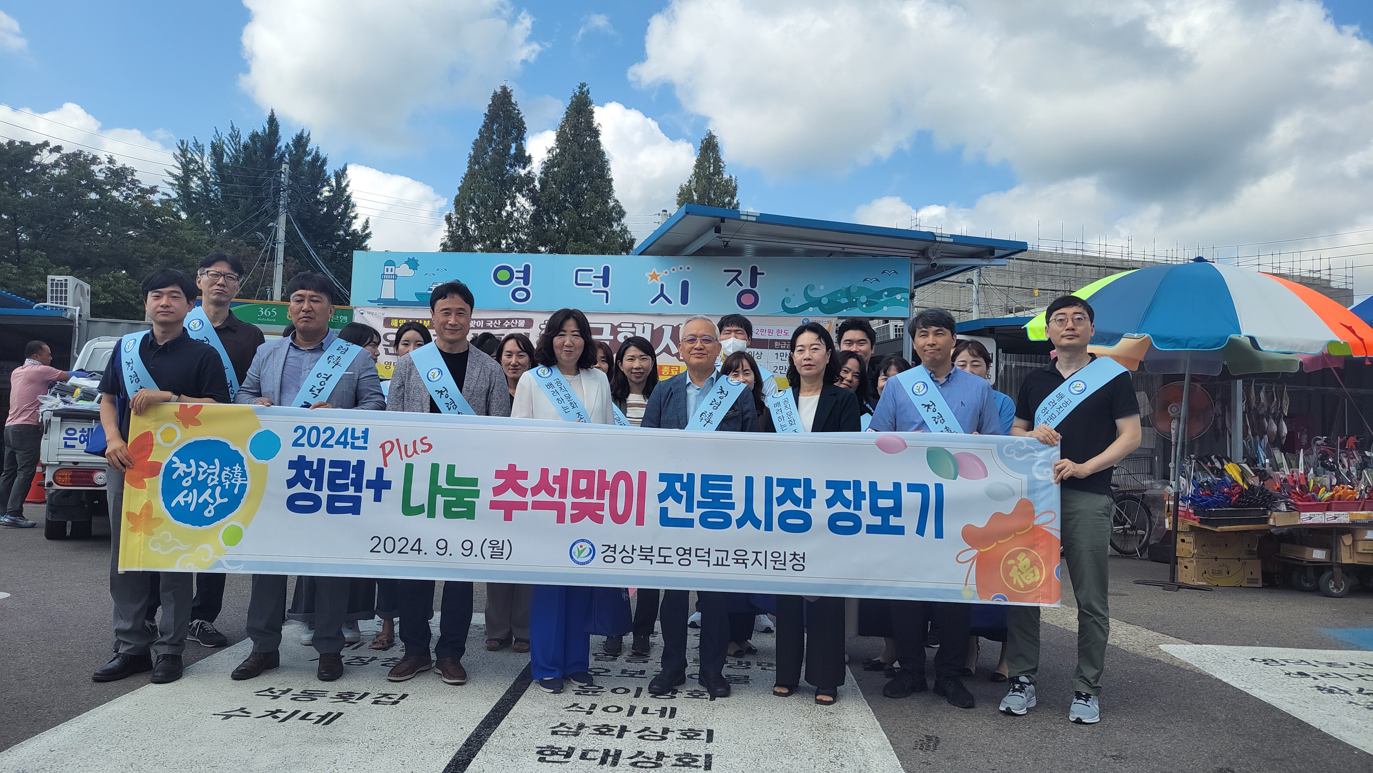 □ 영덕교육지원청(교육장 윤인한)은 추석명절을 앞두고 9월 9일 영덕시장에서 「청렴+(Plus) 나눔 추석맞이 전통시장 장보기」 캠페인을 실시하였다.