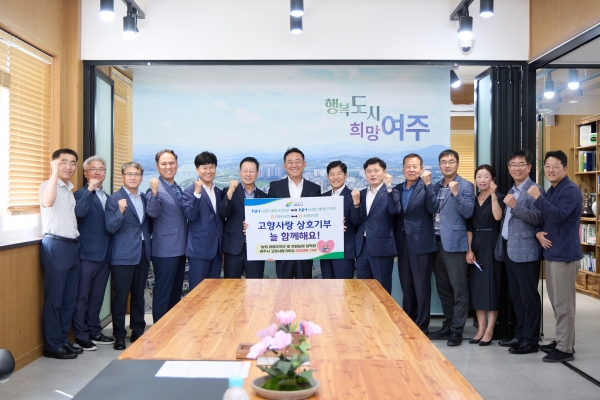 [금요저널] 여주시는 지난 9월 5일 여주시청 시장실에서 농협중앙회 여주시지부, 여주시 점동농협 및 농협중앙회 양평군지부, 양평군 지평농협가 참석한 가운데 고향사랑기부제 상호기부 전달식을 진행했다.