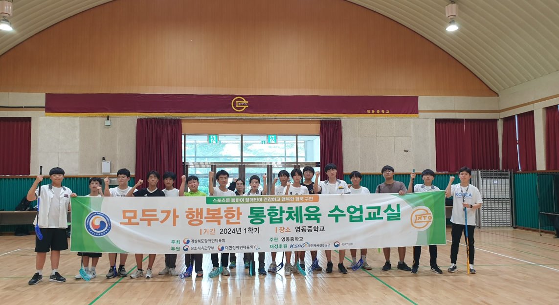 영동중학교(교장 안명환)는 4월부터 9월까지 매주 토요일에 영동중학교 웅비관에서 장애인·비장애인 학생들로 이루어진 총 25명을 대상으로 플로어볼 동아리를 만들어 활동한다.
