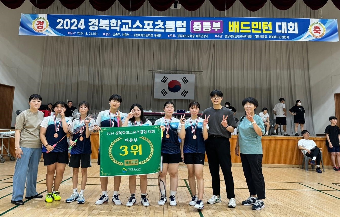 □ 성남여자중학교(교장 백종걸)는 지난 5월 영천교육지원청 주관의 학교 스포츠클럽 대회에서 배드민턴, 댄스, 피구 중등부(여자) 종목에서 모두 우승을 차지하며 경북 학교 스포츠클럽 대회에 영천시 대표로 출전하게 되었다.