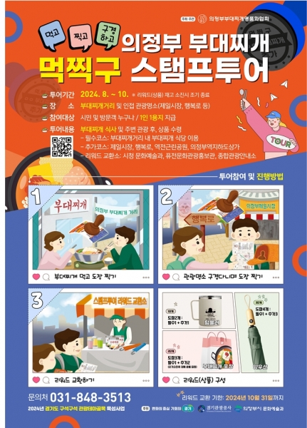 [금요저널] 의정부시는 전국 여행객을 대상으로 8월부터 10월까지 부대찌개거리 일원에서 ‘의정부 부대찌개 먹찍구 도장찍기 여행’를 진행 중이다.
