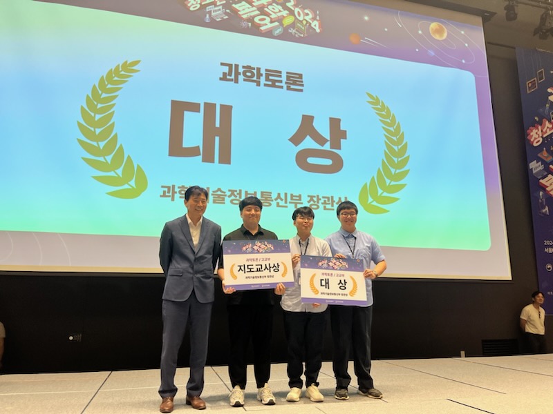 □ 이번 전국대회 과학토론 부문에서는 ‘개인용 이동수단(PM)의 증가 원인을 대중교통의 문제점 관점에서 분석하고, 대중교통의 문제점을 해결할 수 있는 창의적인 방안을 제시’라는 주제로 토론이 펼쳐 졌으며 대회 결과, 본교 2학년 김민교, 조은우 학생이 인공지능 대중교통 통합 길 안내 시스템을 구축하는 과학적인 아이디어를 논리적으로 제시하여 대상을 수상하였다.