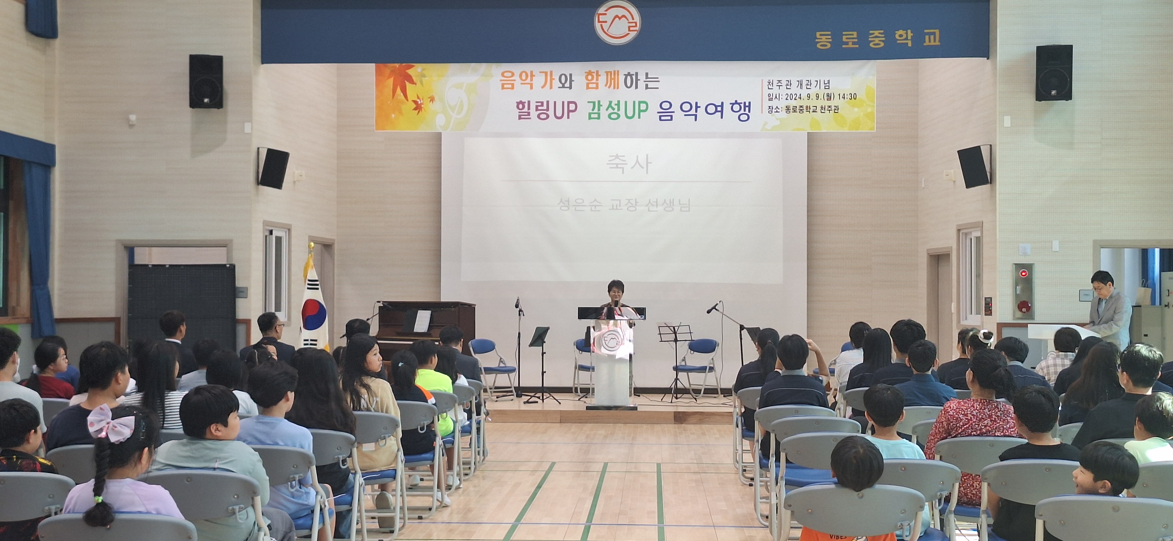 □ 경북 문경 동로중학교(교장 성은순)는 2024년 9월 9일(월)에 본교 소규모 옥외체육관 천주관 개관식을 실시했다.