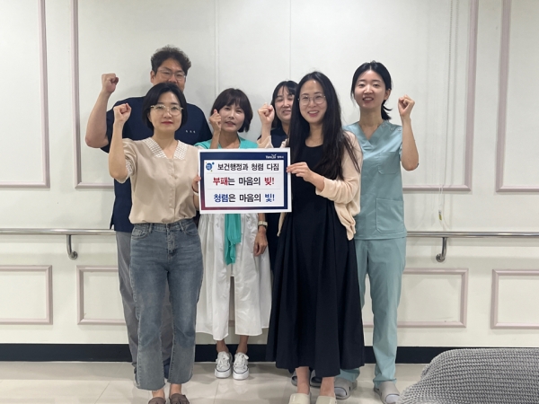 특히 보건진료소는 시민들과 함께하는 청렴 다짐 캠페인을 진행해 시민들에게 청렴한 공직문화를 홍보할 수 있는 계기가 됐다.