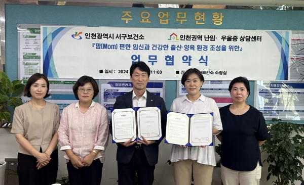 [금요저널] 인천 서구는 9일 인천권역 난임·우울증 상담센터와 맘편한 임신, 건강한 출산·양육 환경 조성을 위한 업무협약을 체결했다고 밝혔다.