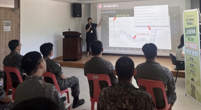 □ 이번에 열린 청춘특강은 김나연 루틴포유 대표를 강사로 초청해‘군테크로 빛나는 슬기로운 병영 생활’을 주제로 진행되었다. 강연은 재무 목표 세우기, 군인이 알아두면 좋은 금융상품 알아보기, 주식투자 등 군인 맞춤형 경제·금융관리 방법을 살펴보고 군인들의 평소 궁금증을 해소하는 시간으로 이루어졌다.