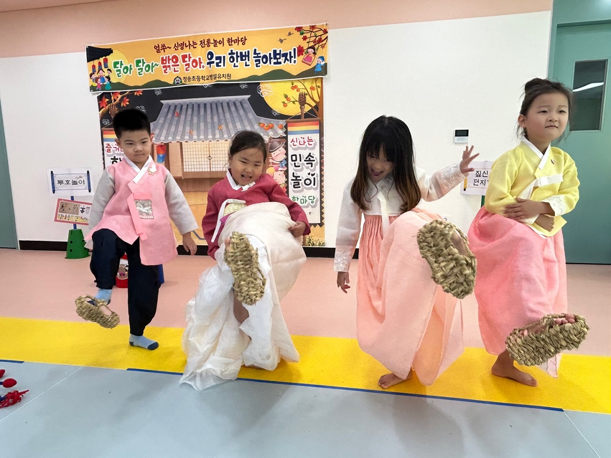 청송초등학교병설유치원장은 “TV, 스마트폰, 태블릿, 유튜브 등 현대에는 다양한 즐길거리들이 많이 생기면서 우리나라 전통놀이들이 자리를 잃고 있다.