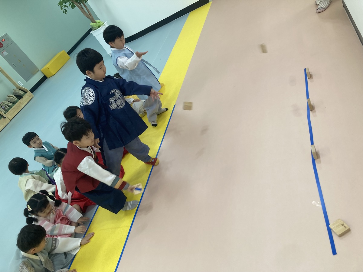 강강술래, 윷놀이, 제기차기, 줄다리기, 비석치기, 투호, 딱지치기, 짚신멀리던지기 등 전통놀이에 맞춰 환경을 구성하고 유아들이 규칙에 따라 전통놀이를 즐기는 시간을 가졌다.