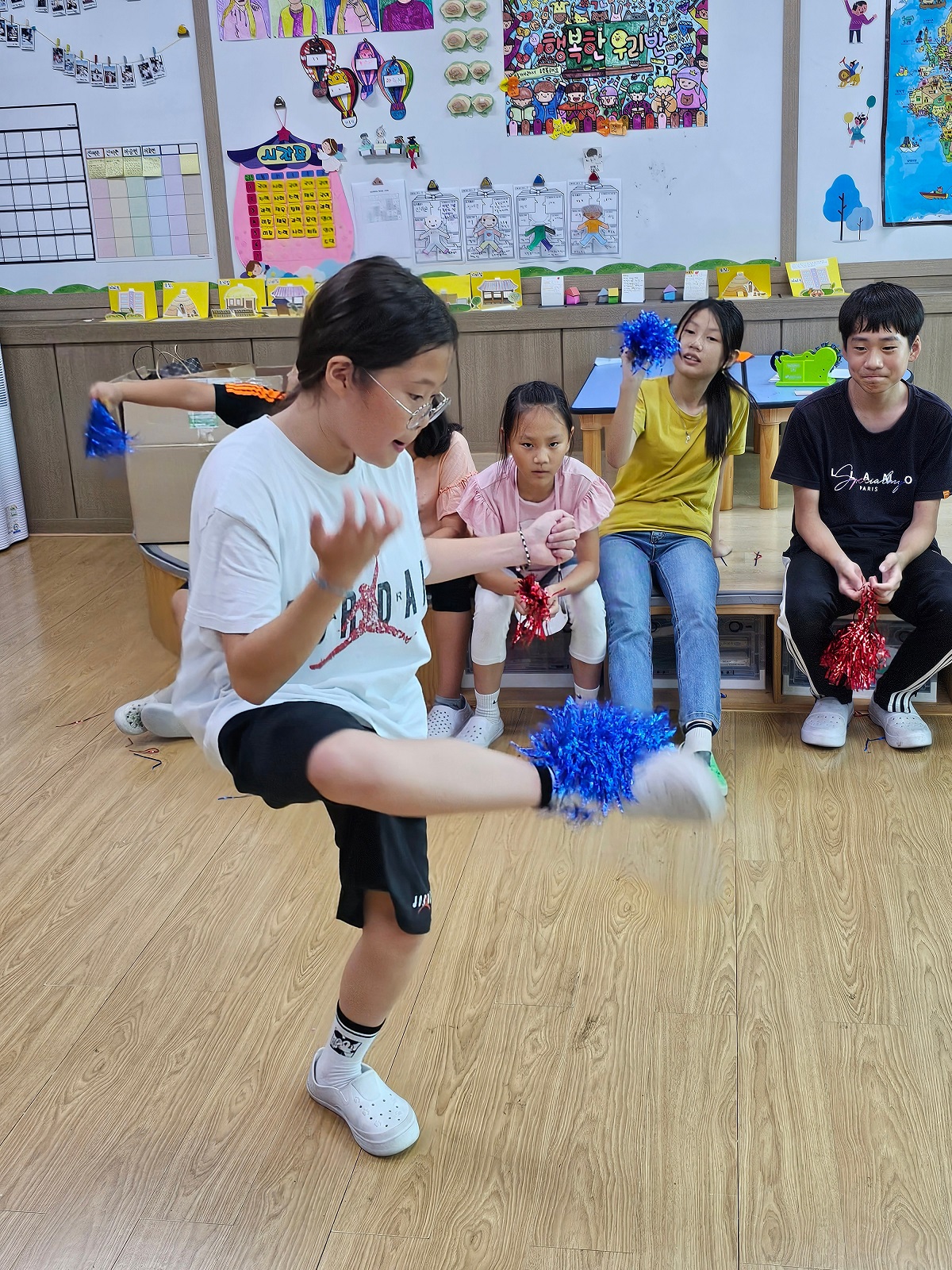 □ 학생들이 옹기종기 모여 앉아 추석의 대표 음식인 송편에 대해 알아보고 직접 손으로 꾹꾹 눌러가면서 반달모양, 나뭇잎 모양, 꽃 모양 등 여러 모양으로 송편을 만들었다. 또한 우리 조상들이 즐기던 전통 놀이의 유래를 알아보고 제기차기, 투호 등 재미있는 전통놀이를 해 보았다.