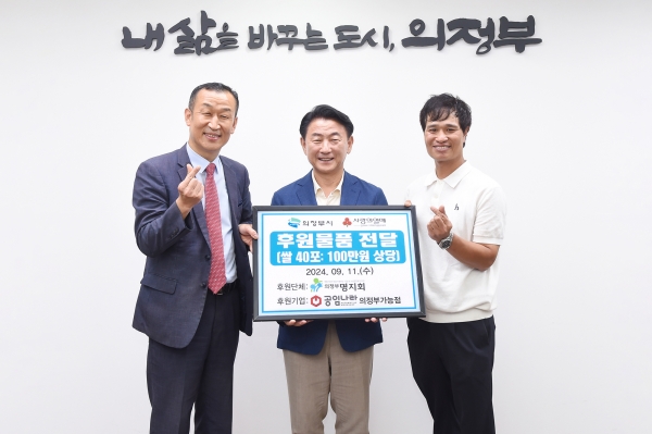 이날 시장실에서 전달식에는 공임나라 이정호 대표와 기정미 공동대표, 의정부명지회 이호직 회장 및 관계자 등 7명이 참석했다.