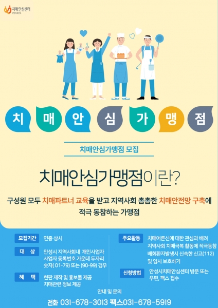 [금요저널] 안성시보건소 치매안심센터는 치매에 대한 정확한 정보 제공과 치매 친화적 사회조성에 적극 동참하는 치매안심가맹점을 모집한다고 밝혔다.