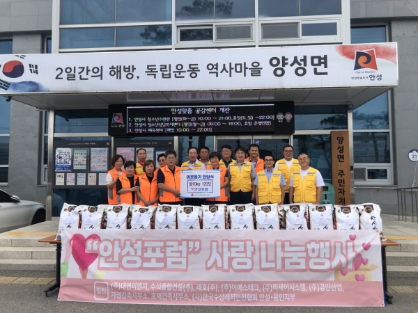 이인희 위원장은 “한 번의 도움이 아닌 지속적으로 이웃돕기를 실천하고 있는 안성포럼 김영기 대표님과 회원분들에게 깊은 감사를 드린다”며 “특히 기탁해 주신 쌀은 양성면 저소득 주민에게 마음을 담아 따뜻하게 전달하겠다”고 말했다.