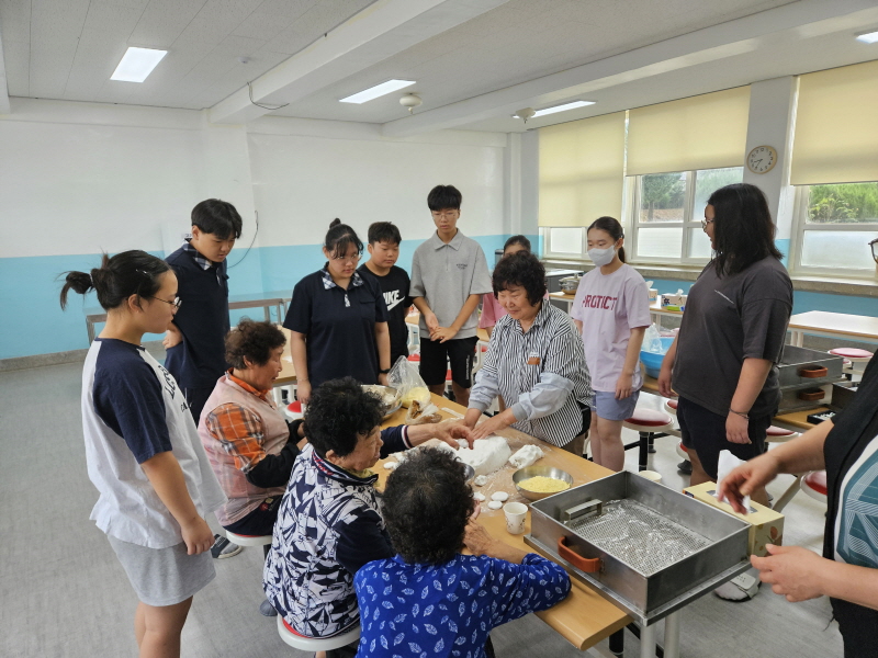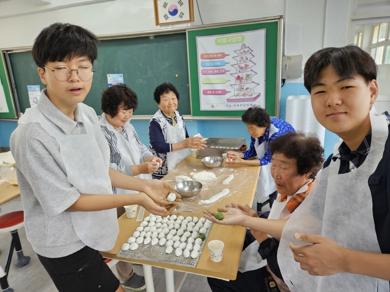 노인 일자리 어르신들이 가르쳐 주신 방법으로 학생들은 저마다의 개성을 담은 송편을 예쁘게 빚었고, 송편이 쪄지는 시간을 이용하여 세대공감 윷놀이도 하고 갖 쪄낸 송편을 어르신들과 함께 먹고 담소를 나누며 교정에 웃음소리가 가득한 즐거운 시간을 가졌다.