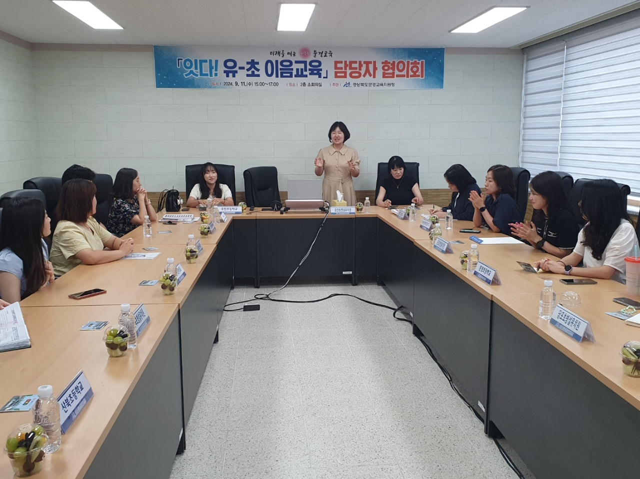 □ 문경교육지원청(이경옥 교육장)은 9월11일(수) 유아의 공교육을 강화하고 유‧초 이음교육을 위해 문경지역 7개 유‧초 이음학기 시범 유치원을 운영하는 담당자들이 모여 협의회를 실시하였다.