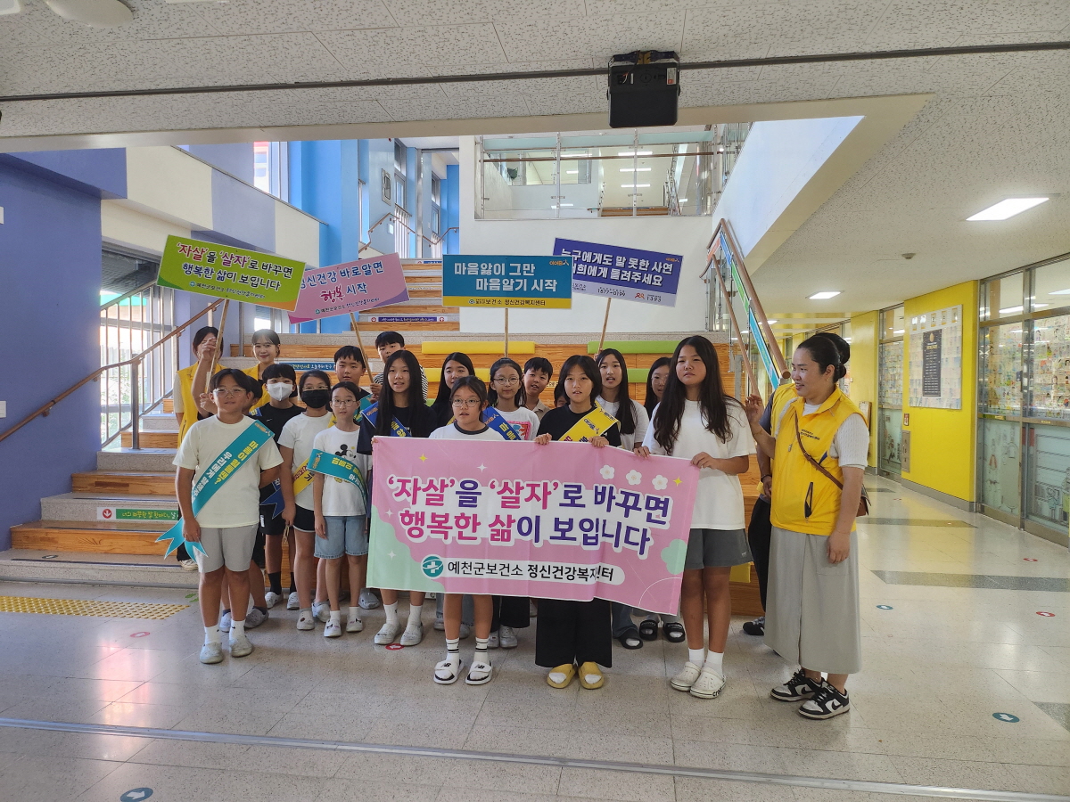 □ 또한 세계 자살 예방의 날(9월 10일)을 맞이하여 예천군보건소 정신건강복지센터와 연계하여 5, 6학년 학생자치회 주관으로 학생 생명 존중 캠페인을 실시하였다.