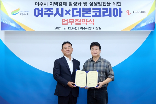 [금요저널] 여주시는 원도심 및 지역경제 활성화를 위해 9월 12일 여주시청 시장실에서 ㈜더본코리아와 상생발전 업무협약를 체결했다고 밝혔다.