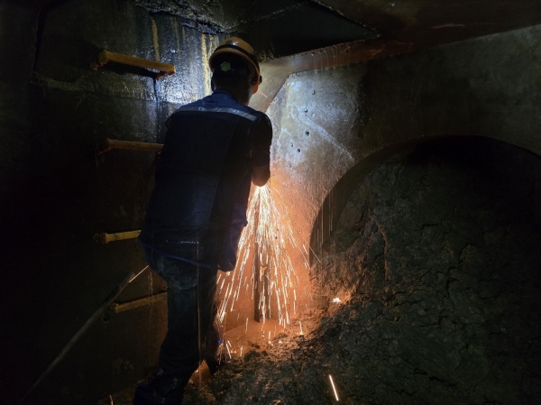 시는 침하 원인 파악에 나서서 맨홀 내 지하 15m 위치에 기능을 상실한 원형 개구부를 찾아냈다.