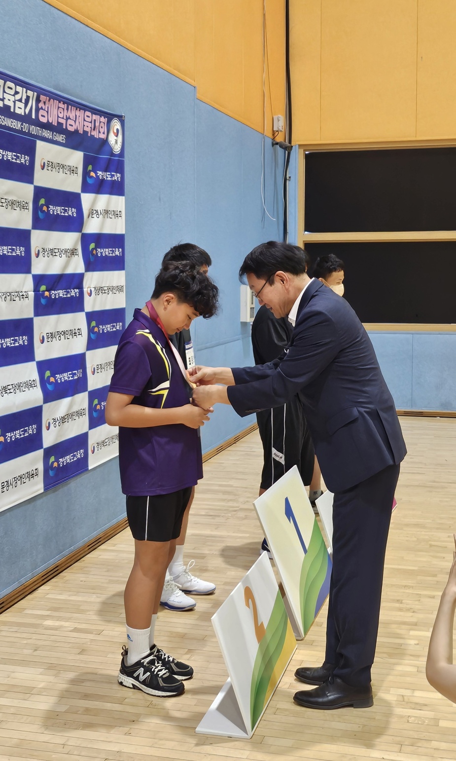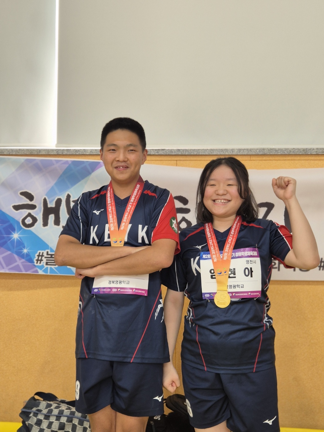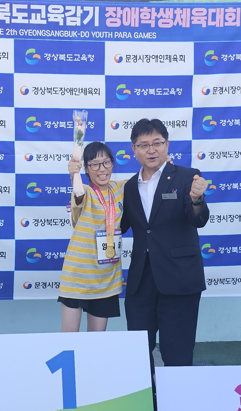 □ 경북 영광학교에서는 육상, 배드민턴, 역도 종목에 참가하였다. 육상 종목에서는 임○슬 학생(초6)이 100m와 200m에서 금메달을 획득하였고 배드민턴 종목에서는 김○민 학생(중3)이 은메달을 획득하였다. 역도 종목에서는 임○아 학생(고3), 이○용 학생(고2)이 금메달을 획득하는 쾌거를 이루었다.
