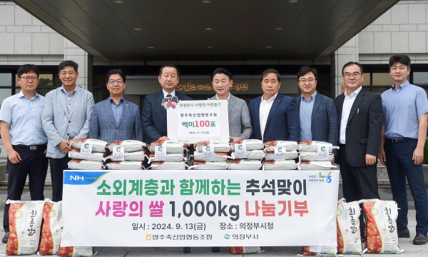 [금요저널] 의정부시는 9월 13일 양주축산업협동조합이 추석을 맞이해 어려운 이웃을 위한 백미 100포를 기부했다고 밝혔다.