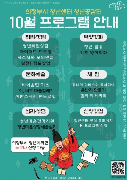 [금요저널] 의정부시 청년센터 청년공감터는 10월 프로그램 ‘청년 마음 성장 예술심리’에 참여할 청년을 9월 19일부터 모집한다.
