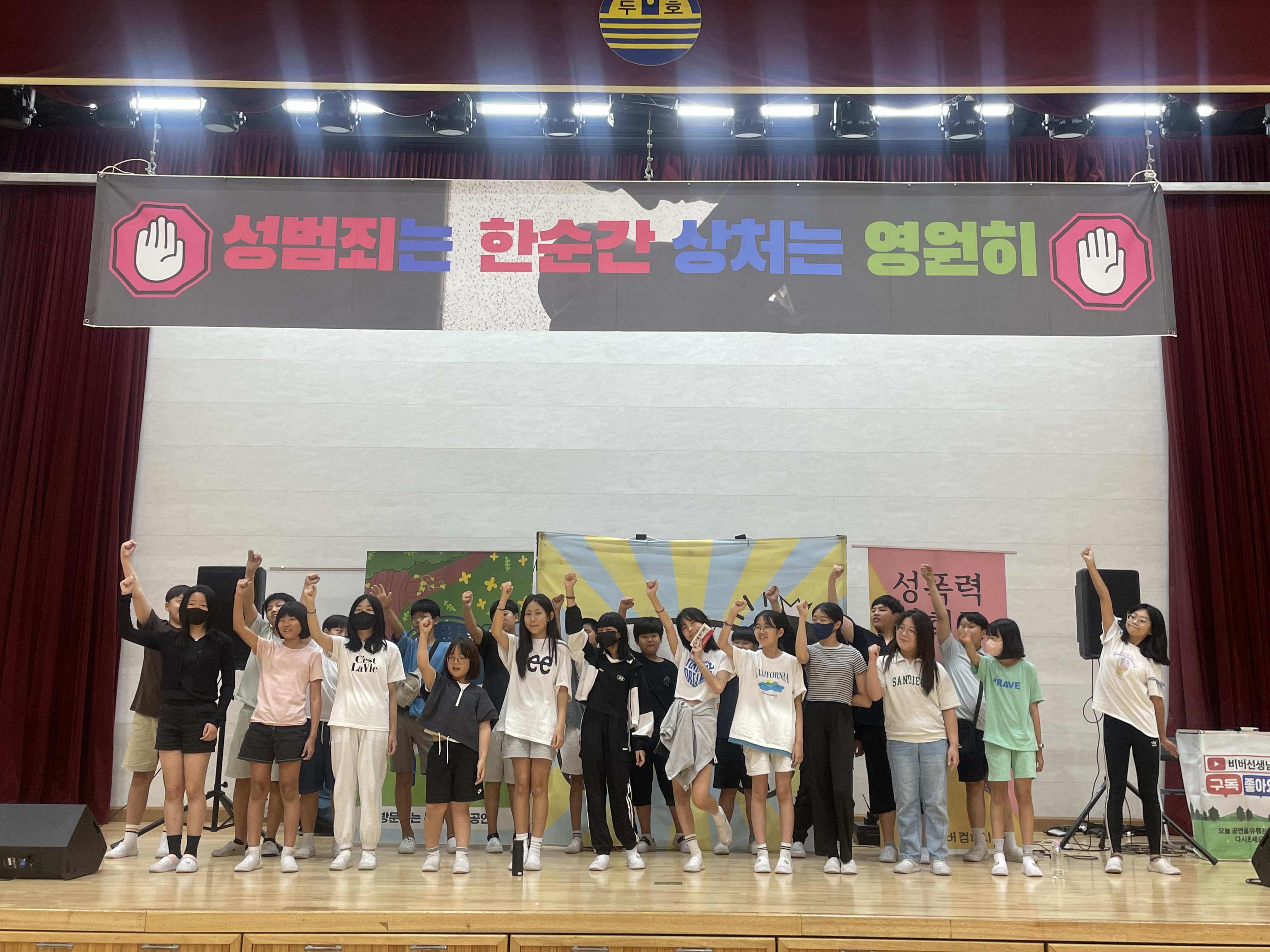 ▣ 양성평등주간에 맞춰 실시한 이번 교육은 대규모 공연으로 구성되어 전교생의 올바른 성 가치관을 향상시키고, 성폭력 등에 대비할 수 있는 능력을 키우는 토대를 마련하였다.