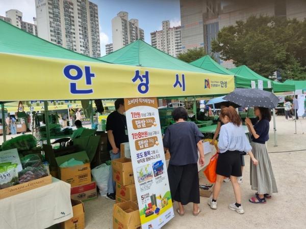 이번 행사에는 안성 포도, 오이, 양파 등 안성시 대표 농특산물의 직거래 판매가 진행됐으며 1만원 이상 구매 시 안성 햅쌀을 제공하는 등 홍보판촉 행사를 통해 큰 호응을 얻었다.