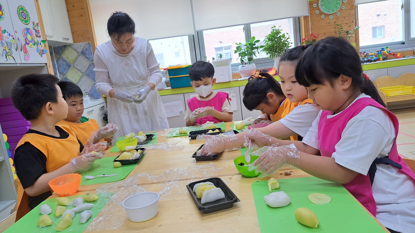 추석 전통음식인 송편 만드는 방법을 알아보고 손으로 직접 반죽을 빚어 모양을 내어‘나만의 송편 만들기’를 하고 가지런히 담아 포장도 직접 해 보았다.