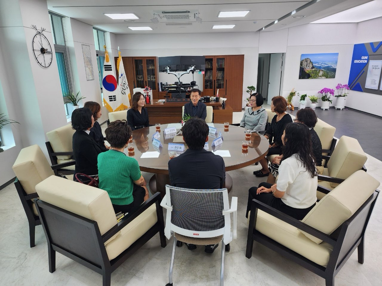구미시 사립유치원연합회(회장 임명해)는 2024년 9월 13일(금) 구미교육지원청(교육장 남성관)을 방문하여 구미지역 인재 양성을 위한 사랑의 장학금 1,000만원을 기탁하였다.