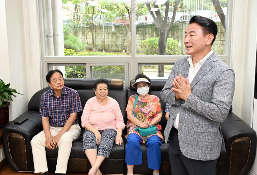김동근 의정부시장이 13일 ‘웰니스경로당 만들기 프로젝트’의 일환으로 양지마을8단지 경로당을 방문해 노인들과 진솔한 소통의 시간을 가졌다.