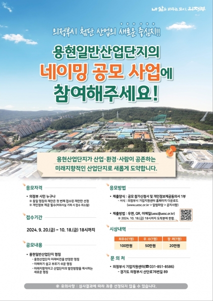 [금요저널] 의정부시는 용현산업단지의 노후 이미지를 개선하고 첨단산업단지로 도약시키고자 산업단지의 발전 방향과 미래상을 담은 브랜드 명칭을 공모한다.