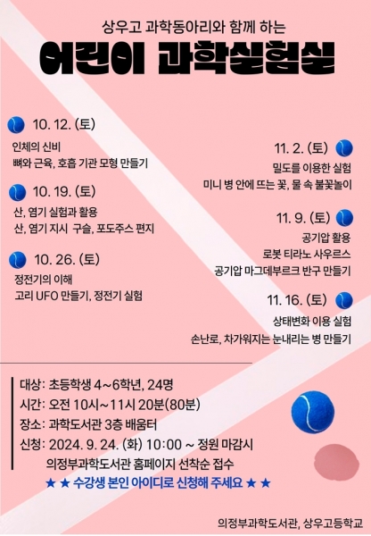 참여를 원하는 어린이들은 9월 24일 오전 10시부터 의정부과학도서관 누리집에서 참가 학생의 식별로 신청하면 된다.