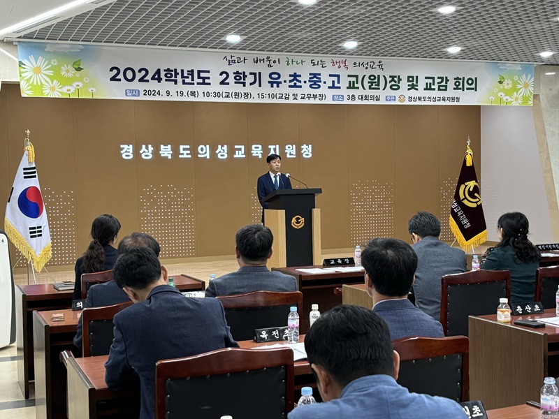 경상북도의성교육지원청(교육장 이우식)은 9월 19일(목) 오전 10시 30분부터 관내 유․초․중․고등학교 교(원)장과 소속기관장, 교육지원청 관계자 48명을 대상으로 의성교육지원청 3층 대회의실에서 회의를 개최했다.