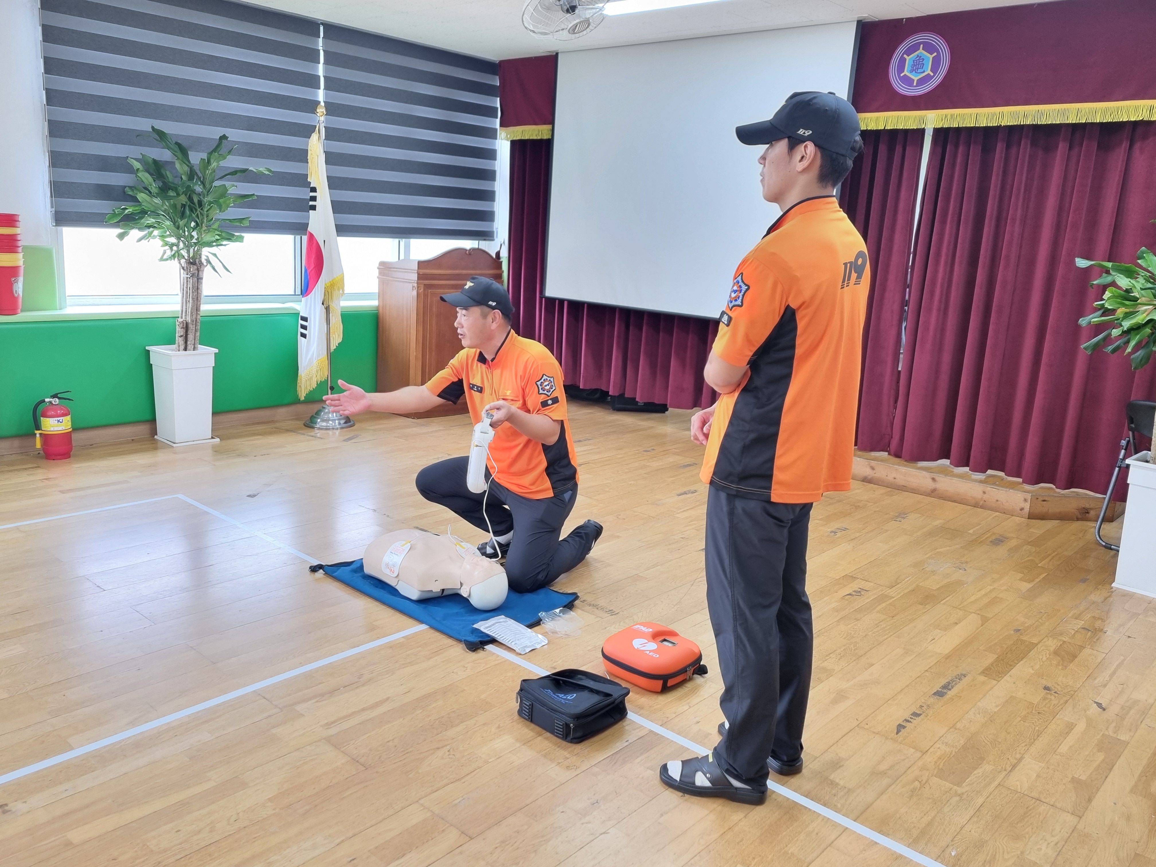 안전센터 소속 소방대원 3명이 방문해 소방안전교육을 실시 했다. 이번 교육은 화재 예방과 안전 수칙을 주제로 한 강의로 시작하여 심폐소생술 실습과 소화기 사용법 학습 등 실전에서 실제로 실행할 수 있는 소방 안전 역량을 기르도록 진행되어, 어린 학생들에게 매우 의미 있는 시간이 되었다.