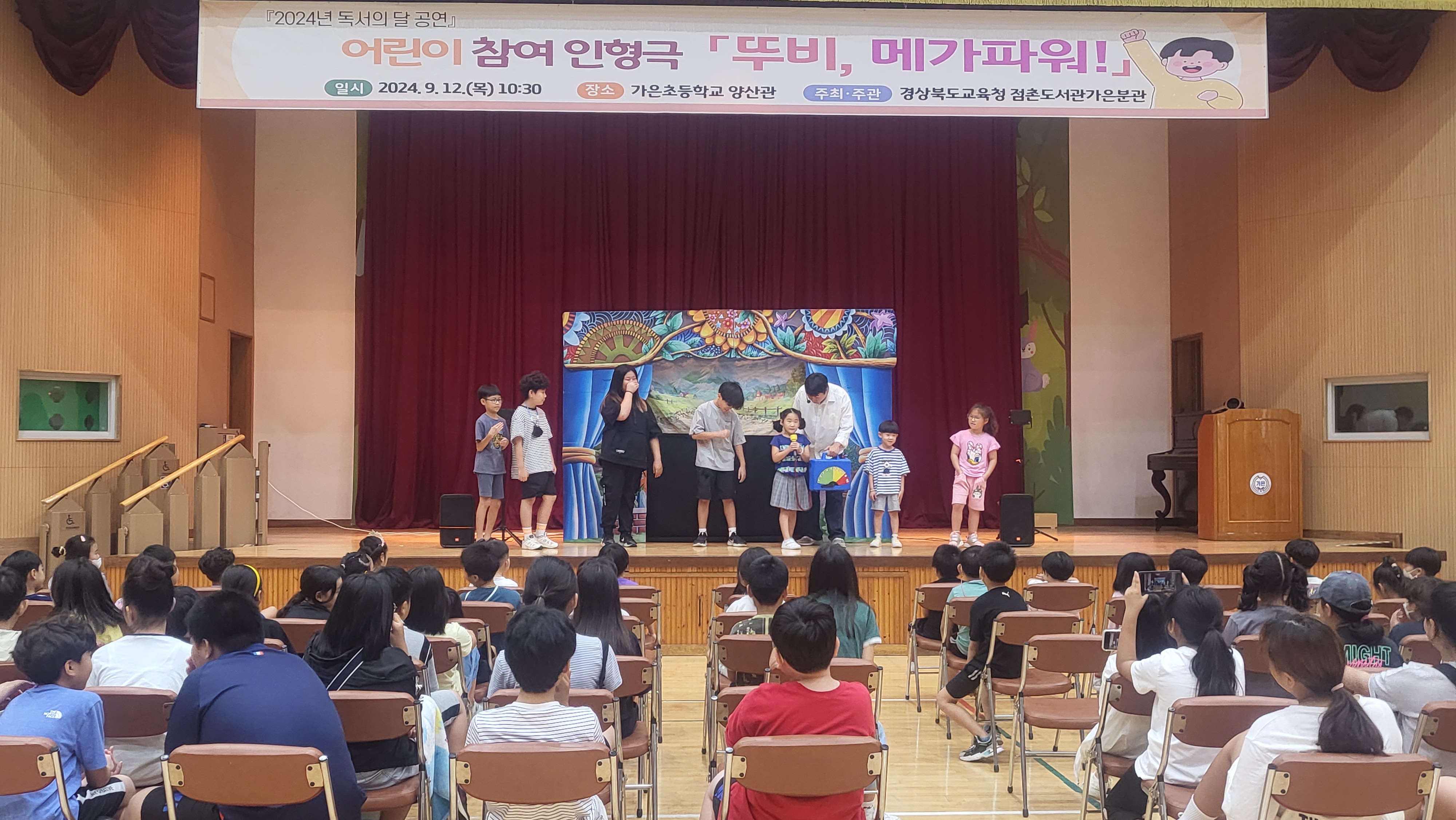 □ 가은초등학교병설유치원(원장 최을희)은 9월 12일(목) 3학급 유치원 전체 원아와 초등학교 전체 학생들을 대상으로 체육관에서 가은분관 주관 어린이 인형극을 공동 관람하였다.