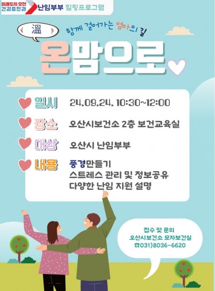 [금요저널] 오산시는 24일 난임으로 스트레스를 받는 부부들을 위한 난임부부 힐링 프로그램‘온맘으로’ 운영을 시작한다.