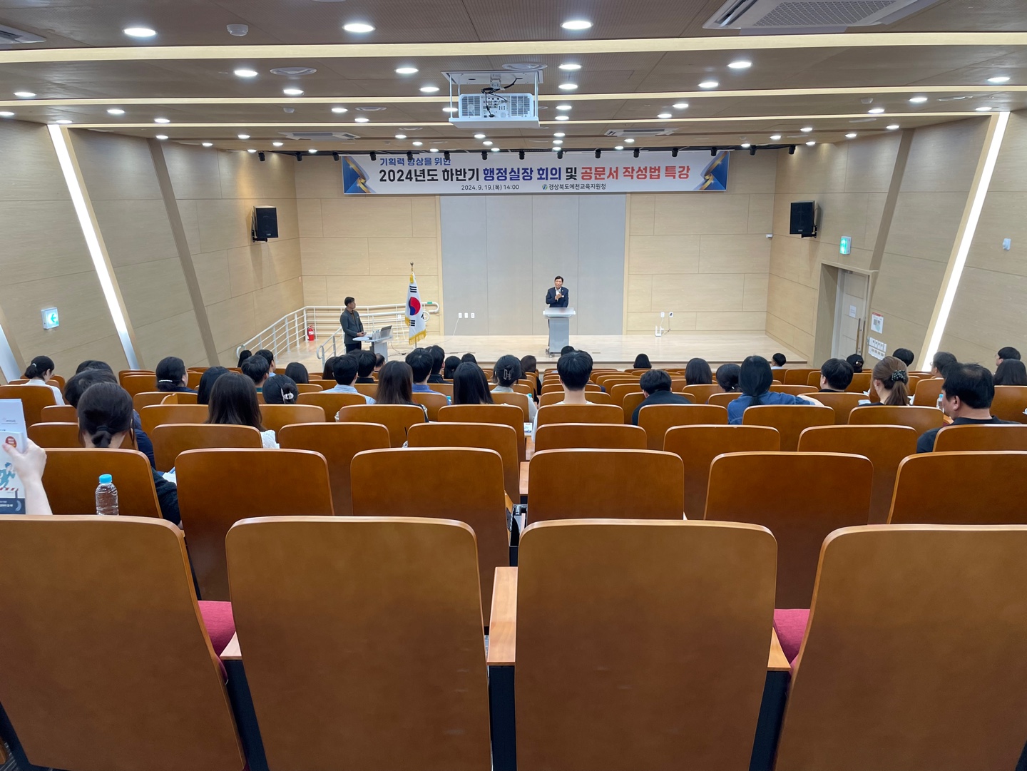 경상북도예천교육지원청(교육장 이창희)은 9월 19일(목) 오후 2시 예천군 복합커뮤니티센터 4층 다목적실에서 유ㆍ초ㆍ중학교 행정실장 및 소속 교직원 100여명이 참석한 가운데 행정실장 회의 및 공문서 작성법 특강을 실시했다.