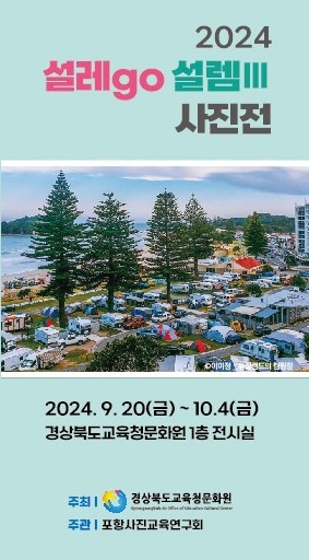 경상북도교육청문화원(원장 박민아)은 9월 20일부터 10월 4일까지 여행을 주제로 한 포항사진교육연구회(회장 권혁대, 장흥중 교감)의 ‘설렘GO 설렘Ⅲ’사진전을 1층 전시실에서 개최한다.