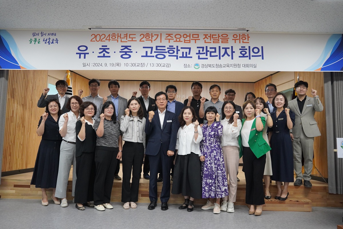 □ 경상북도청송교육지원청(교육장 신덕섭)은 2024년 9월 19일(목) 청사 3층 대회의실에서 관내 유·초·중·고등학교 교장(원장)-오전 및 교감(원감)-오후 총 29명이 참석한 가운데 ‘2024학년도 2학기 학교 관리자 회의’를 개최했다.