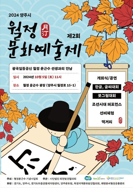 [금요저널] 양주시가 오는 10월 5일 월정윤근수 광장에서 ‘2024년 제2회 월정문화예술제’ 가 개최된다고 밝혔다.