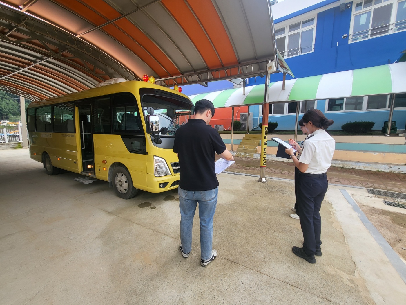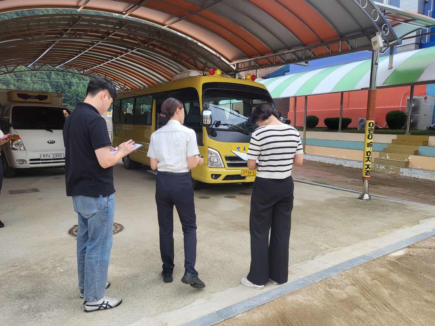 □ 주요 점검 항목으로는 ▲어린이통학버스 신고 여부 ▲좌석안전띠 상태 및 작동여부 ▲어린이 하차확인장치 설치 상태 및 작동 여부 등 안전과 관련된 항목을 비롯해 운영자·운전자·동승자에 대한 안전교육 이수 여부, 통학버스 안전운행기록에 대한 점검도 실시하였다.