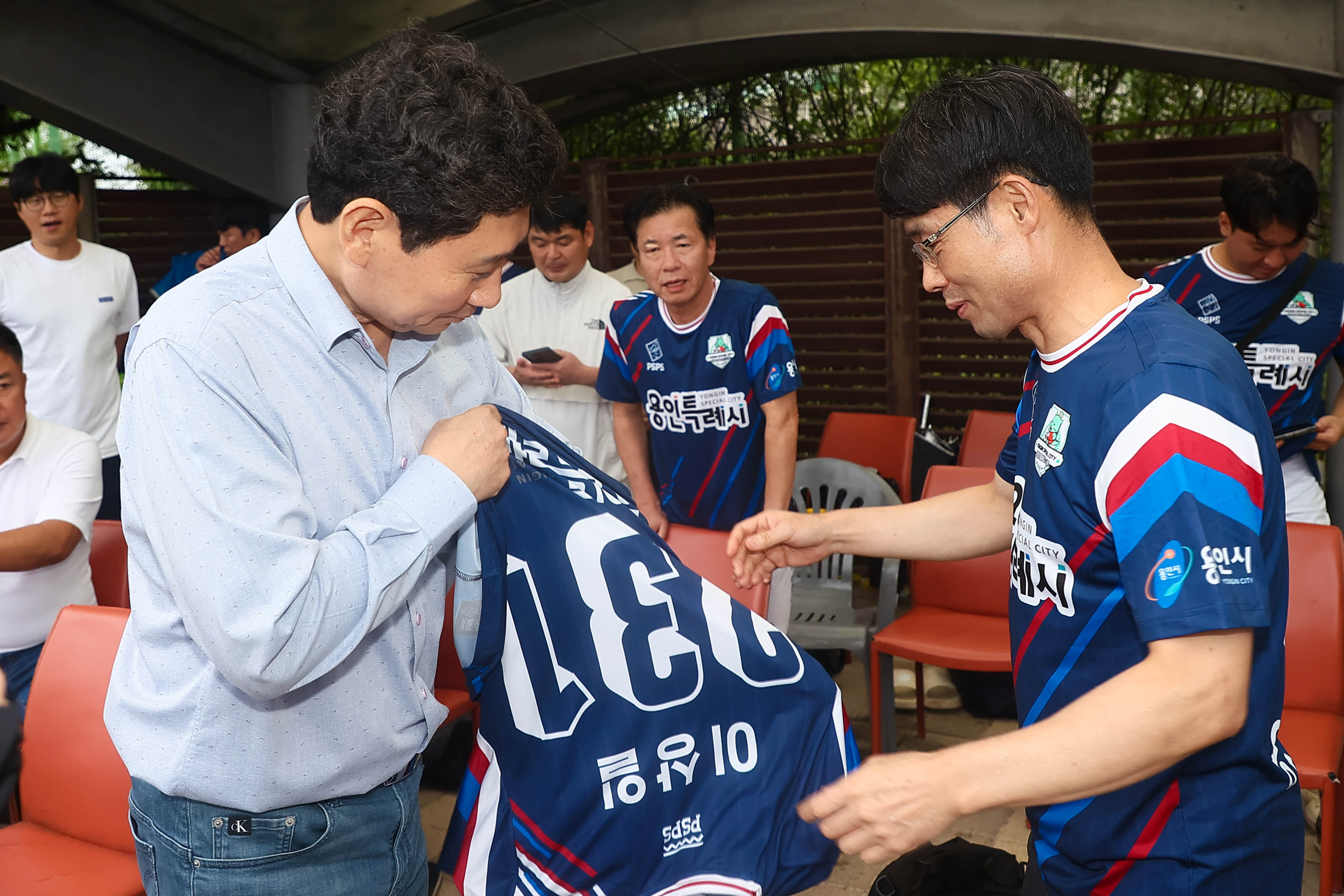 이 시장이 축구장을 찾았을 때 시 축구팀은 이 시장 이름과 발음이 비슷한 숫자인 ‘231’번이란 등번호가 새겨진 유니폼을 선물했다. 이 시장은 이 유니폼을 입고 용인특례시와 포천시의 축구경기를 지켜보며 시 선수단을 응원했다. 이 경기에서 시 축구팀은 1대 0으로 승리했다.
