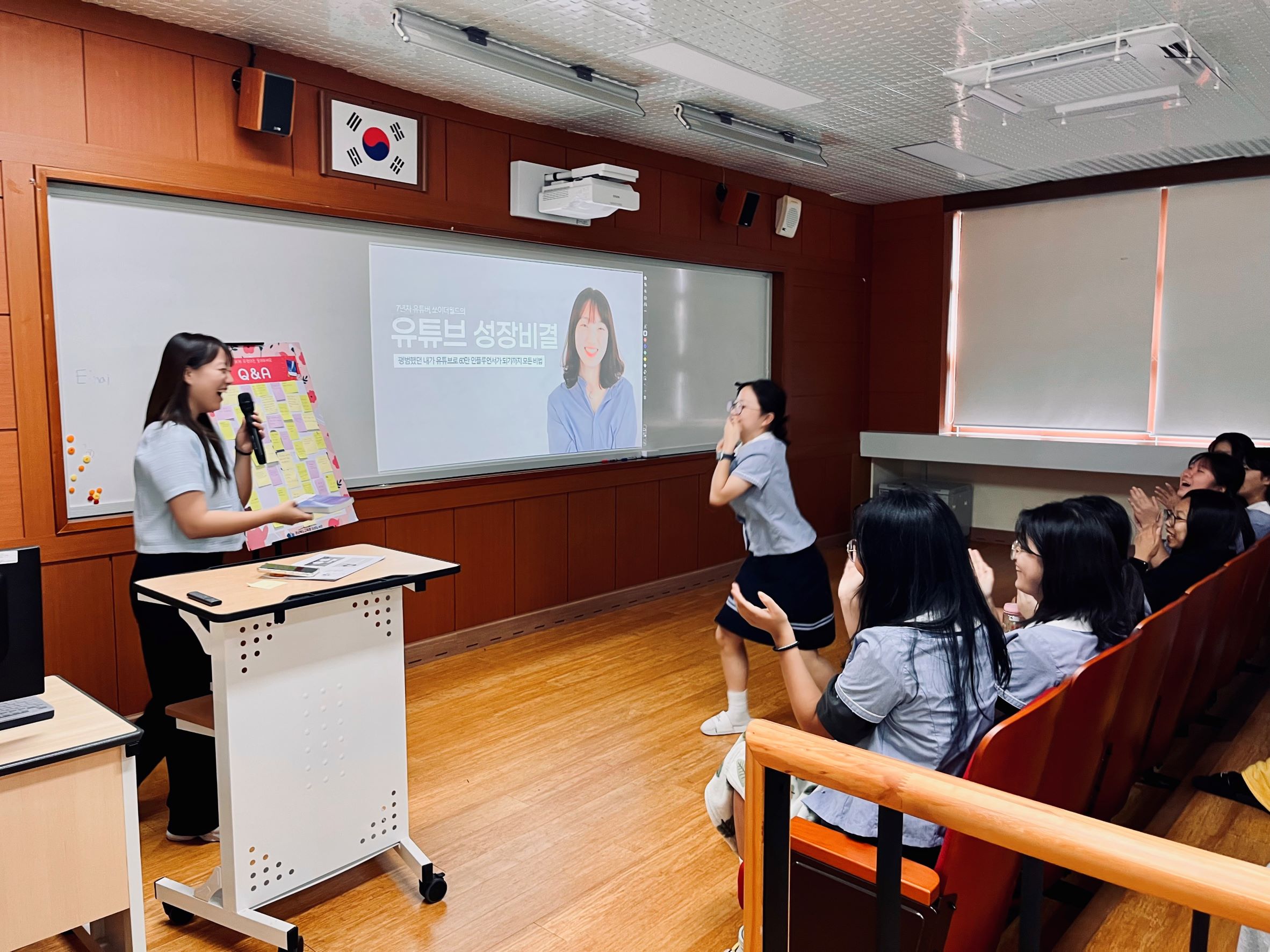 □ 공인노무사라는 전문직을 포기하고 떠난 여행을 계기로 유튜버가 된 이소연 작가는 창작자로 살아가는 데 필요한 이야기와 넓은 세계를 경험한 인사이트를 학생들에게 전달했다.