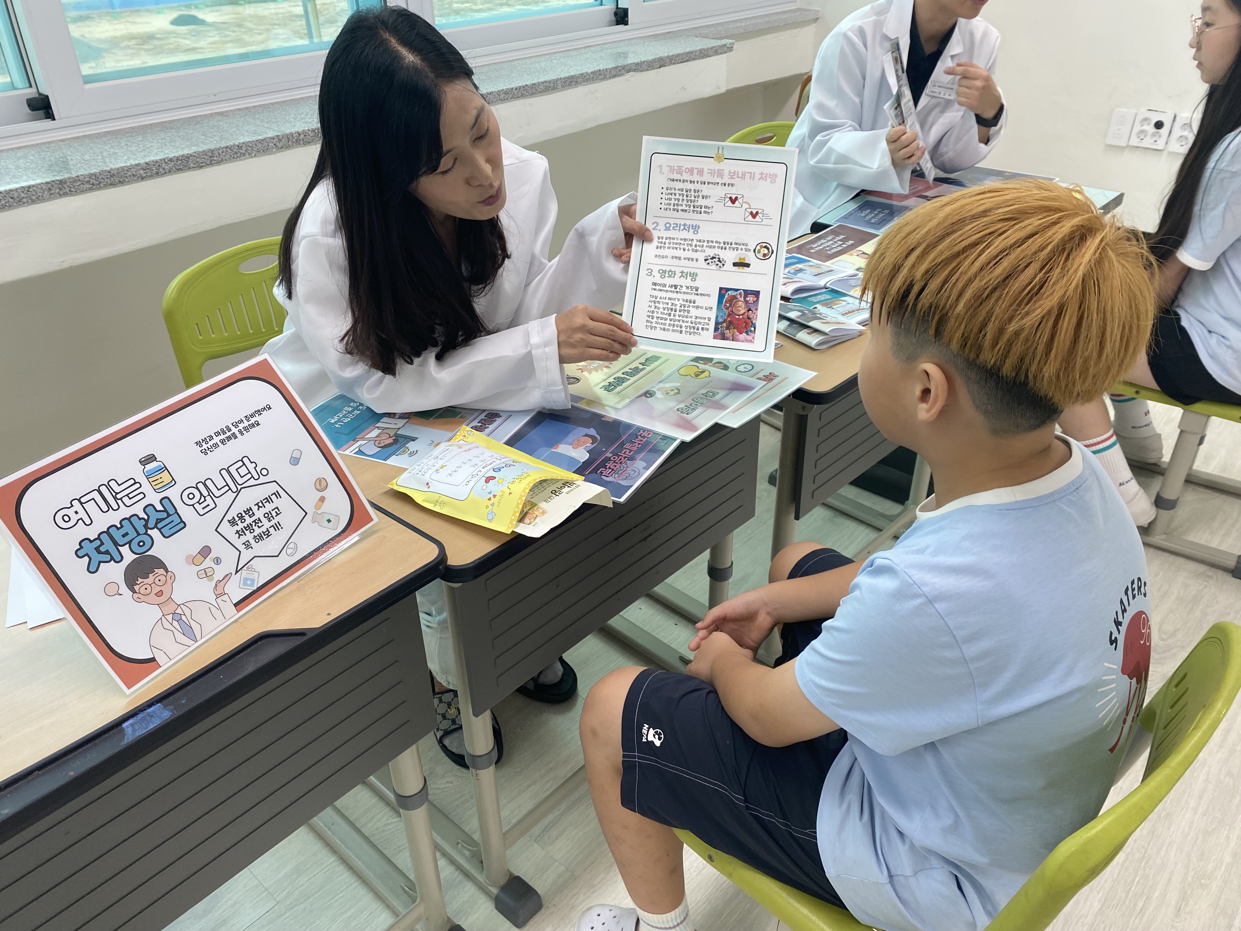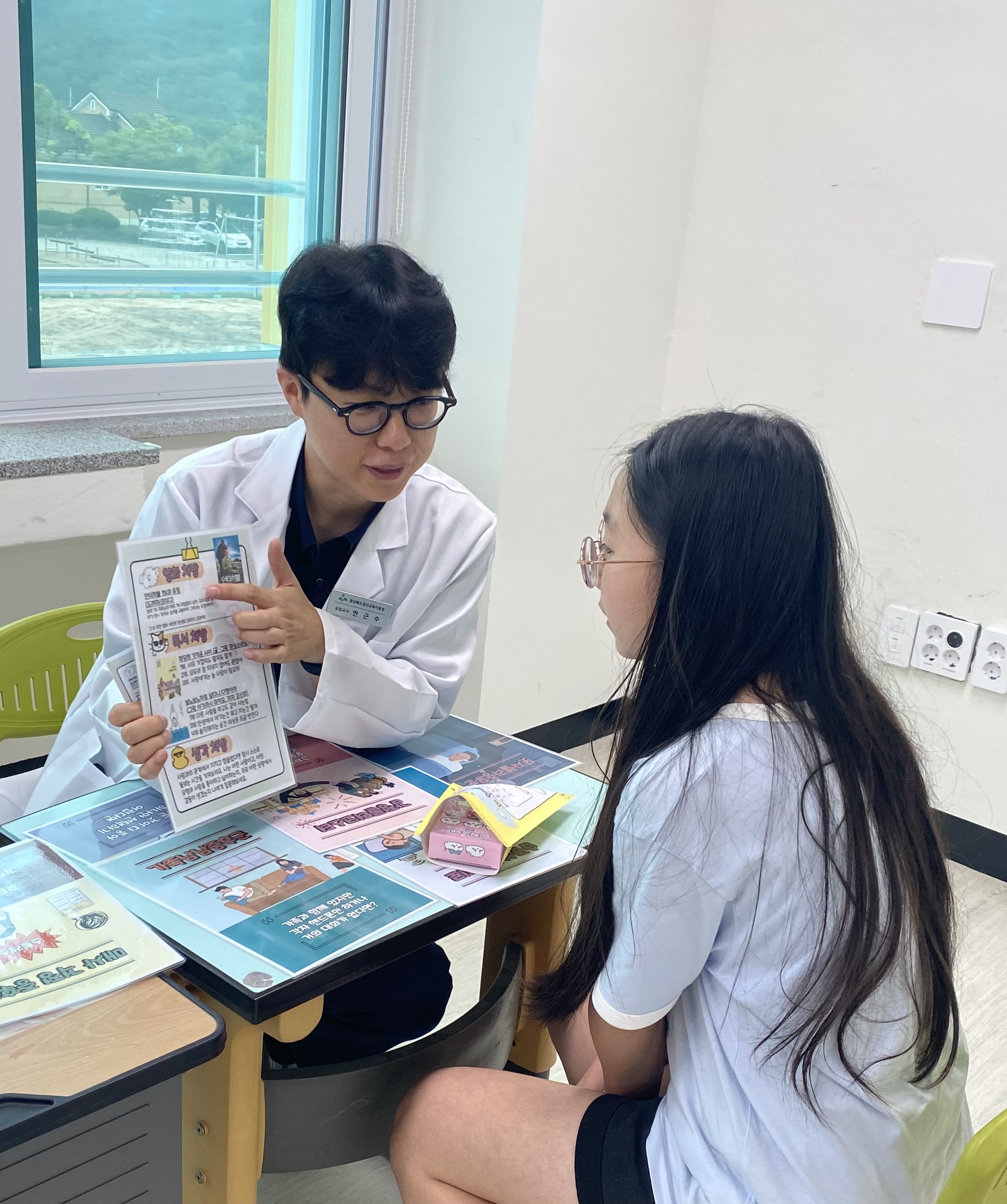 □ 남천초등학교(교장 권명숙)는 9월 20일, 생명사랑 특별주간(9월9일~9월20일)운영행사로 점심시간을 이용하여 경산교육지원청 Wee센터의 협조로 교내에서 '마음약방'을 운영하였다.