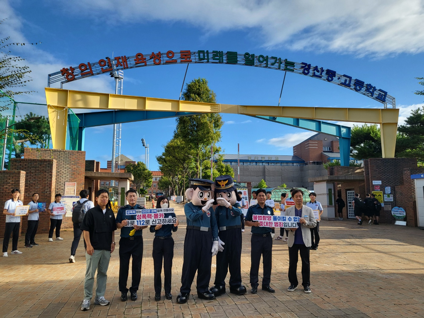 □ 경산고등학교(교장 정석주)는 9월 23일(월) 등굣길에 학생회 주관으로 경산경찰서와 연계하여 학교폭력 및 언어문화 개선 캠페인 활동을 실시했다.