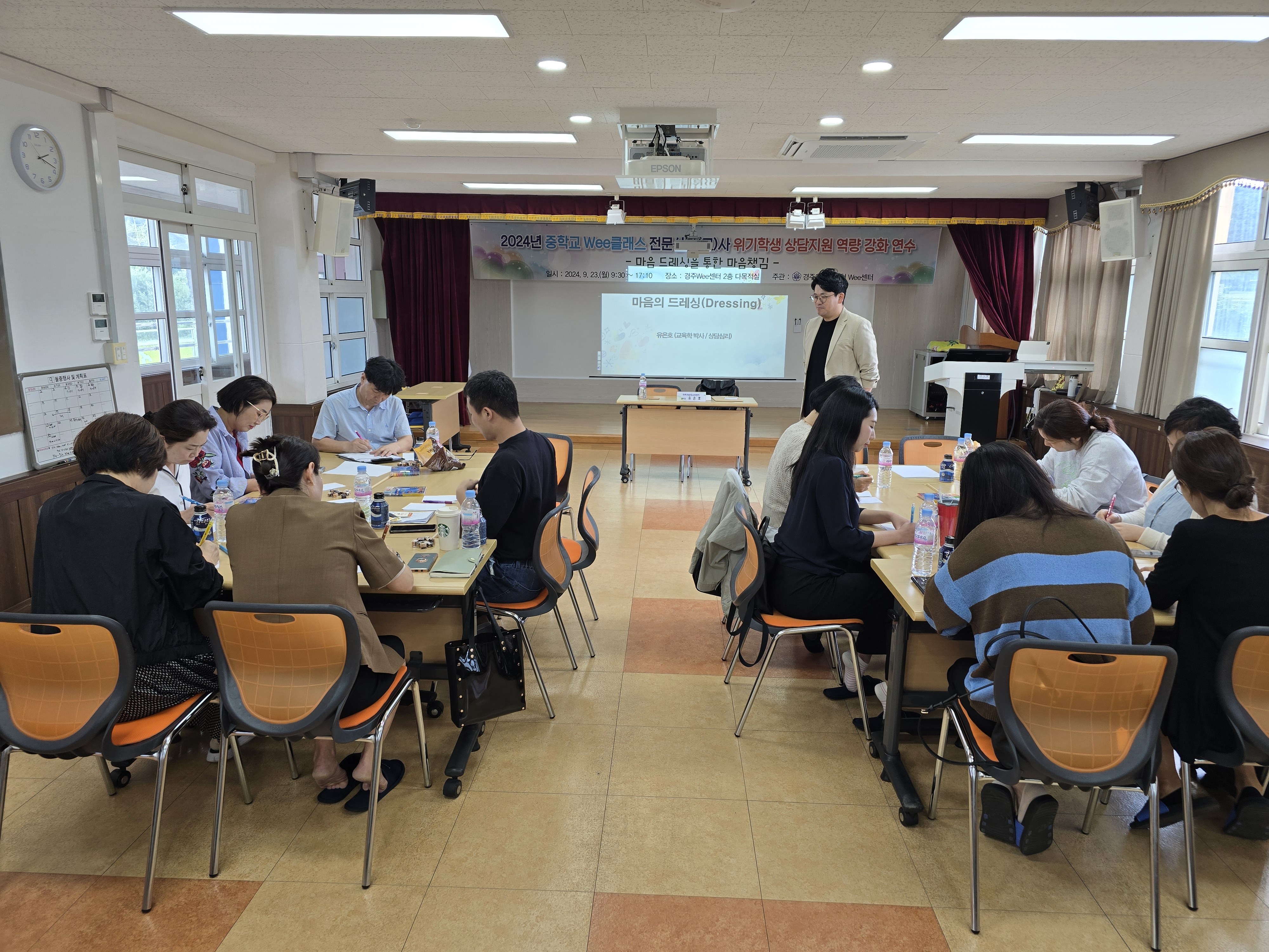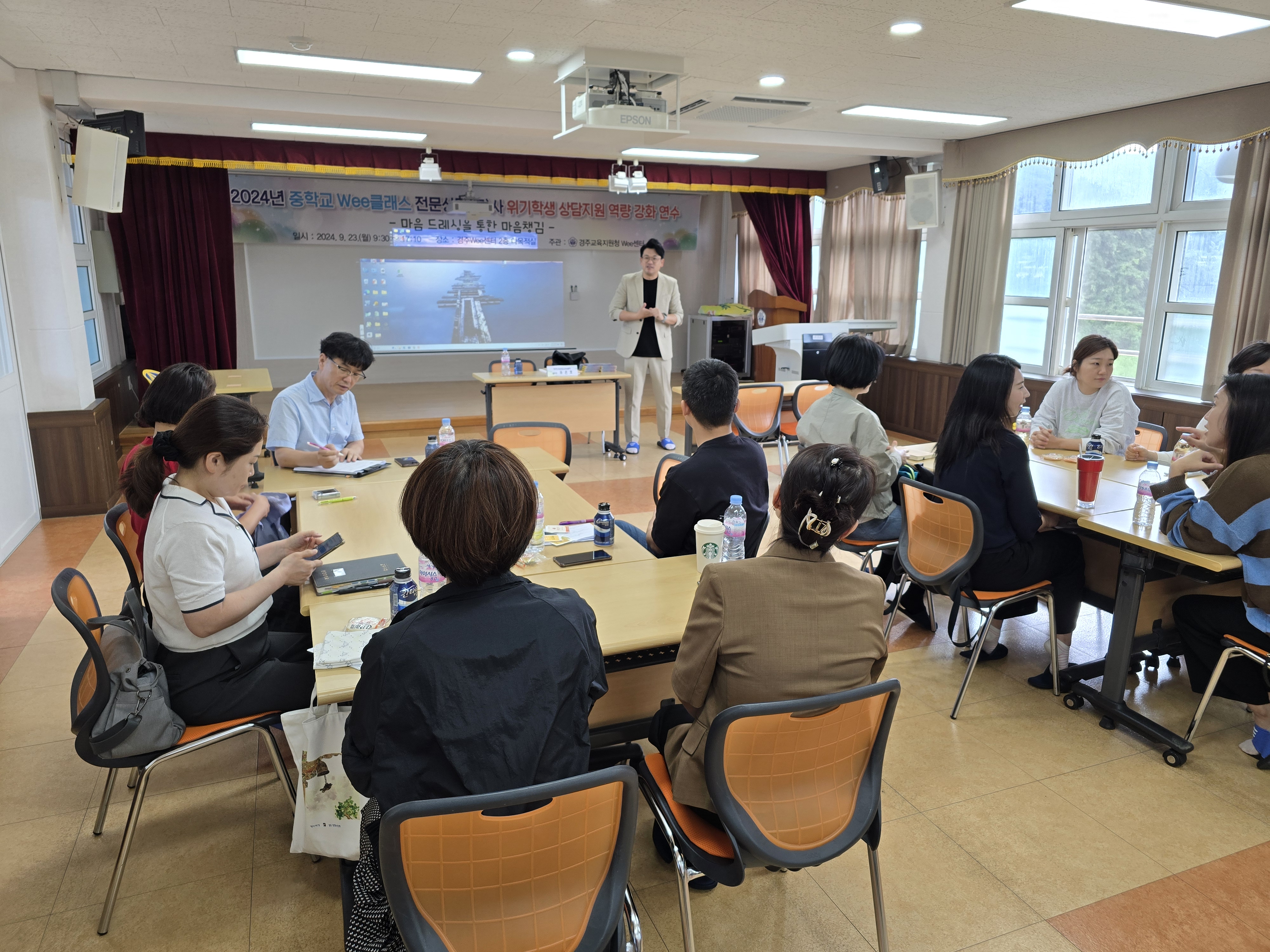 경주교육지원청(교육장 권대훈) Wee센터는 9월 23일(월)부터 10월 15일(화)에 걸쳐 경주교육지원청Wee센터 다목적실에서 관내 전문상담교사 및 전문상담사 60명을 대상으로 마음 드레싱을 통한 마음챙김 및 게슈탈트 모래놀이 치료 연수를 실시한다.
